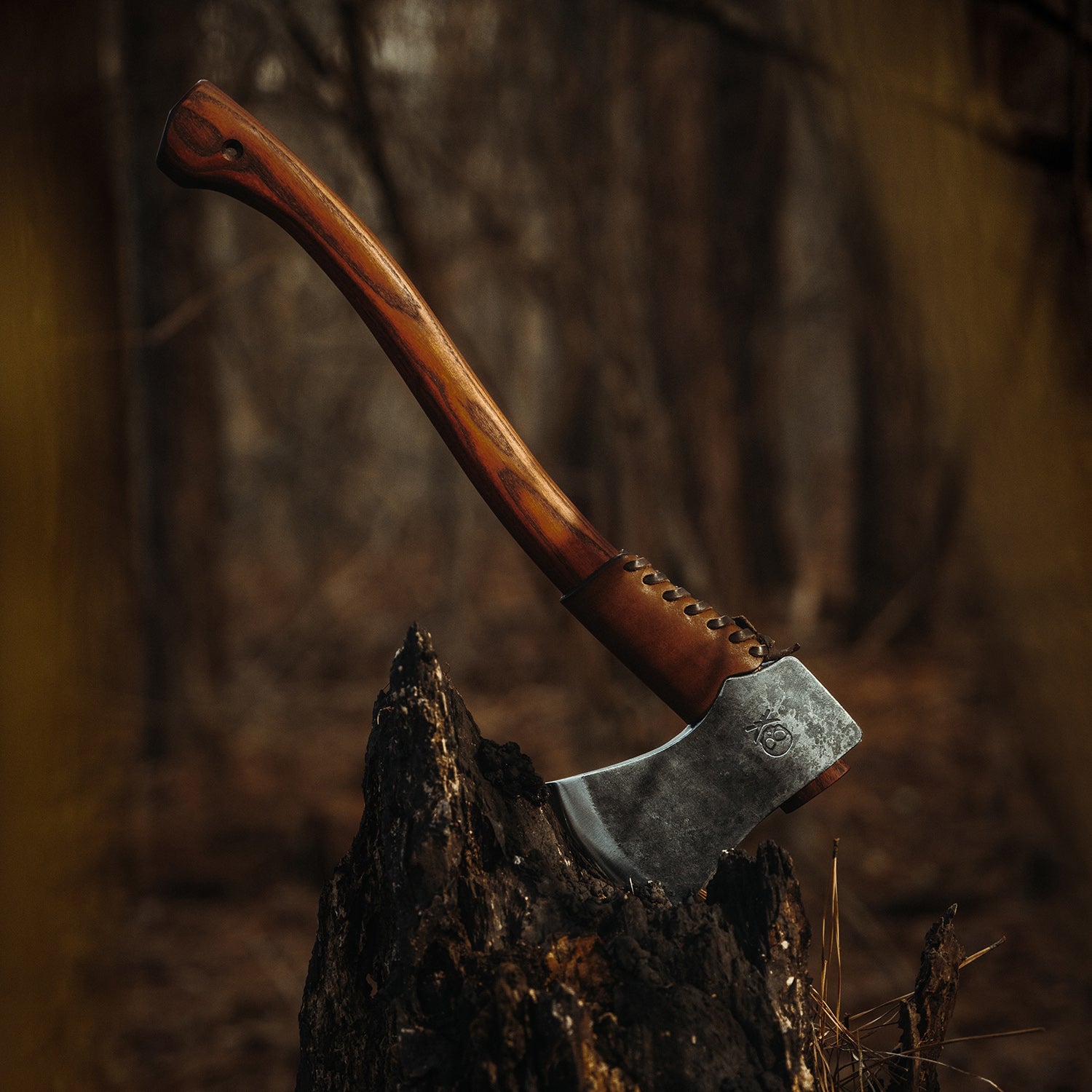 Back with a bigger axe head, longer handle, and leather overstriking guard. Every single one of these axes is hand forged from solid chunk of billet 52100 steel with extreme skill with a HRC of 58. No shortcuts. Hand made one at a time.