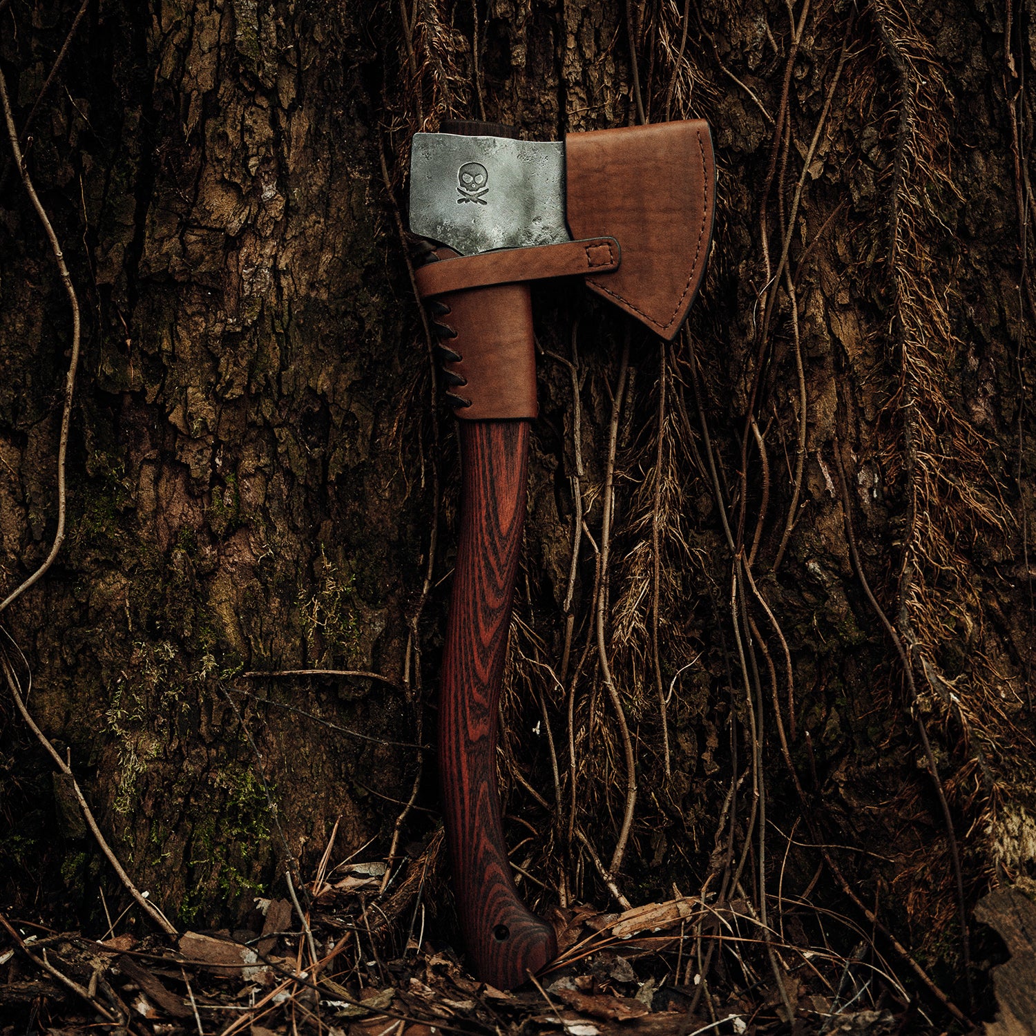It will bite if you’re not careful. This is not a toy. We’ve gone ahead and made brown leather sheaths to protect you and the axe itself.