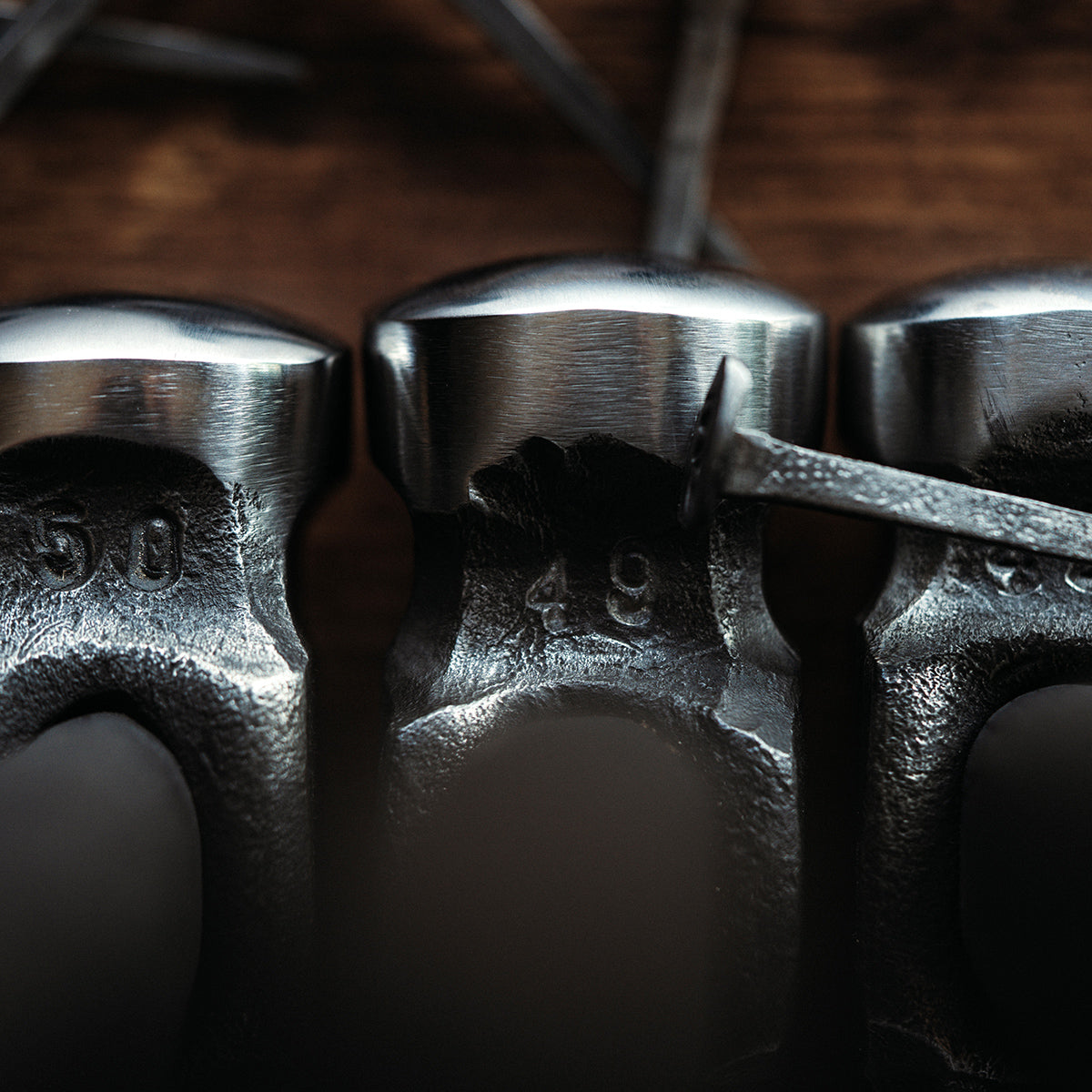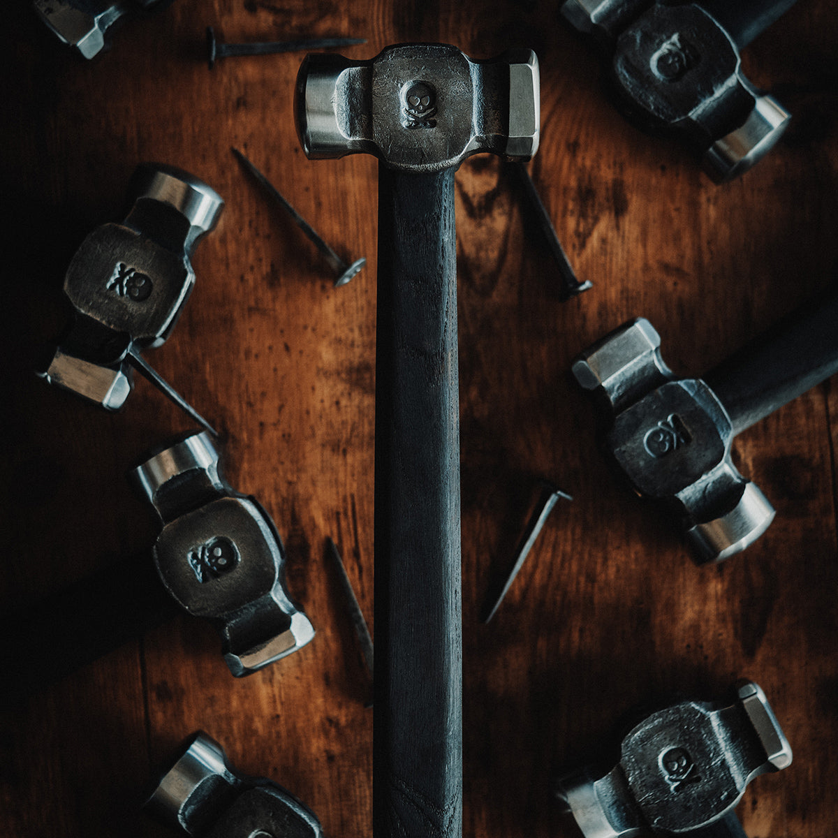 Hand forged rounding hammers made in the USA by a certified ABS Journeyman Smith. 1045 heat treated steel. One at a time. starting from a chunk of raw billet steel. No short cuts. Each handle is also custom made and shaped to perfectly fit each individual head.